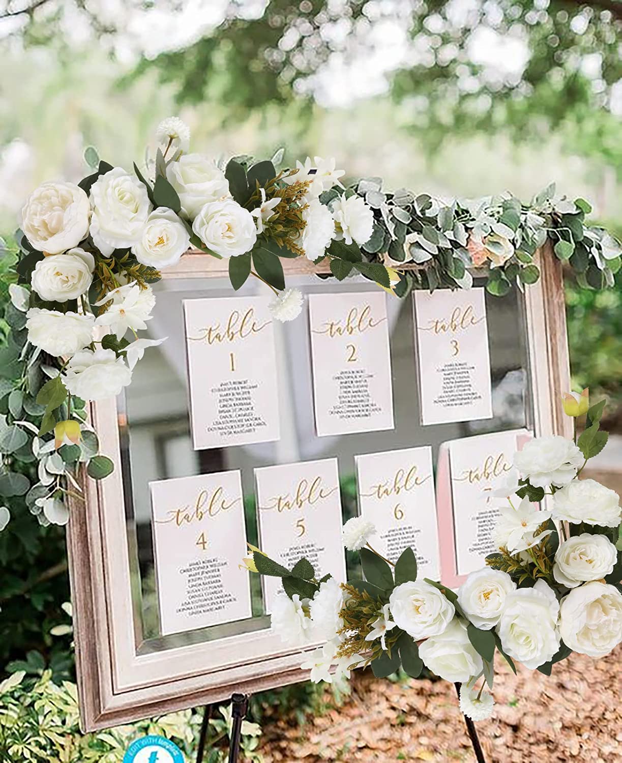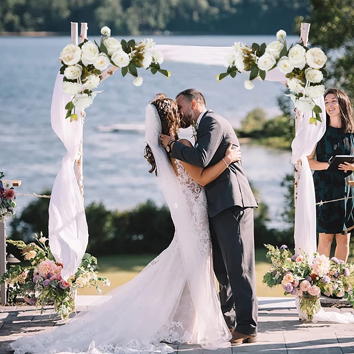 - 【Fantastic Wedding Decorations】The white flower swags are mainly a combination of white fake roses, artificial peonies & artificial ball silk flowers. The floral swag flowers are with realistic and natural looking. Size: Approx. 17.7 inches long and 11.8 inches wide. The wedding arch flowers includes 2pcs of flower swags, 2 packs of metal clip, 4pcs zip ties. Perfect for your wedding reception ceremony decoration