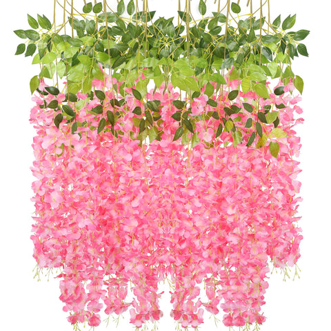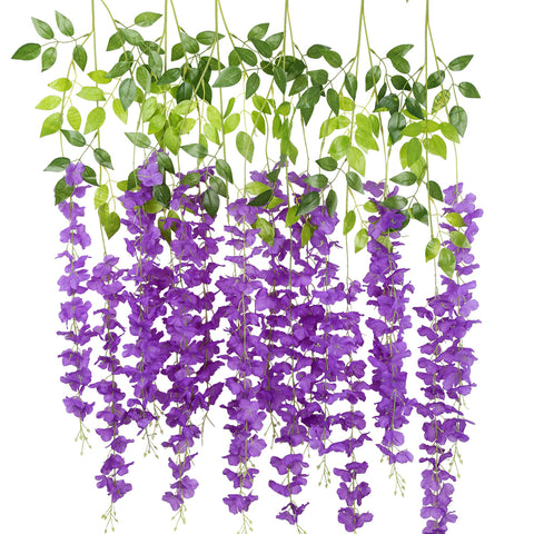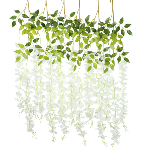 6/12 Pack Artificial Fake Wisteria Vine Ratta Hanging Garland,Per Artificial Wisteria with 3 Branches.