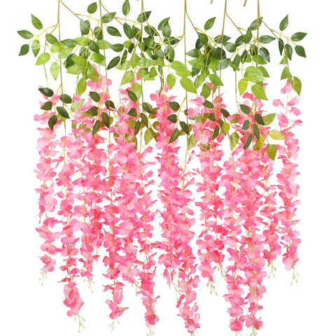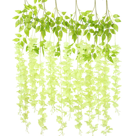 6 /12Pack 3.6 Feet/Pcs Silk Artificial Fake Wisteria Vine Ratta Hanging Garland for Home Party Garden Wedding Decor